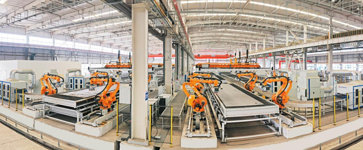 智能下料生产线运用智能程控行车、关节机器人、桁架机械手、激光切割机、等离子切割机、智能AGV小车等先进设备,依托大数据、人工智能、机器人、视觉识别等先进技术,首创重机行业“混合套料、集中下料、智能控制”的新模式,致力于打造“黑灯工厂”以及国家级智能制造试点示范、省级智能制造标杆项目。