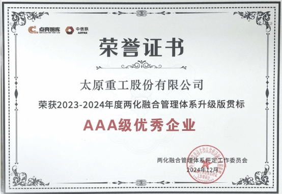 近日,安博app登录入口成功获评2023-2024年度两化融合管理体系升级贯标AAA级优秀企业,成为山西装备制造业首家被工业和信息化部认可的国家两化融合管理体系AAA级的企业,标志着公司成为行业前列的两化融合管理示范企业。